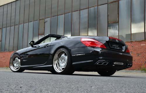 擅長打造獨特動感外觀的MEC Design,不僅藉由線條美學(xué)徹底突破M.Benz既有的傳統(tǒng)造型風(fēng)格,即使在簡潔設(shè)計風(fēng)格之下仍是展現(xiàn)出極為侵略的性能態(tài)勢,不過針對全新霸氣的SL敞篷車款(R231),似乎并不需在外觀上有過多的裝扮,為此僅提供整合于后保桿的消音尾筒。然而在底盤方面,MEC Design mecxtremel三片鍍鉻鍛造輪轂前10J×20后12J××20,另外搭配前255/30ZR 20后305/25ZR 20性能胎以提供更為充足的接地面積與抓地力,而懸掛系統(tǒng)也重新在ELS模組中寫入新程序,可降低55mm的升降范圍以確保更高的日常生活實用性。