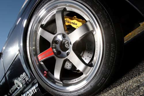 | 與上一輛渦輪M3相同,足下都采用Rays TE36SL鍛造鋁圈,專用的尺寸不需要再加裝輪距墊寬器即可切平葉子版,將M3特有的霸氣徹底展現(xiàn),而內(nèi)藏黃色涂裝Brembo前六后四卡鉗除了制動力十足,畫龍點睛的效果也不在話下。