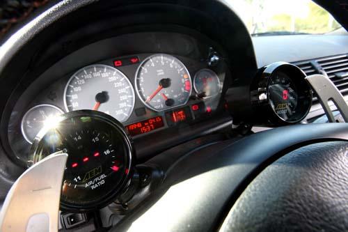 | 畢竟這具發(fā)動機的壓縮比原廠就高達(dá)11.5,在沒有任何強化下,動力提升將近280hp,針對發(fā)動機的溫度及空燃狀況車主更是必需斤斤計較,因此追加了AEM及Defi監(jiān)控儀表。 |  | Active Autowerke E46 M3 Generation 7 Supercharger Kit Level 2內(nèi)原本就搭載了酒精噴射,除了可以提供安定的進氣溫度給本體外,酒精更有助燃燒效率的提升。