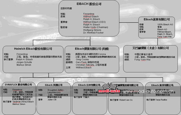 1981:成立艾巴赫表面技術有限公司(EOT GmbH) 1995: 成立EPUS 公司。 購買并搬進在美國加州Irvine的物業(yè) 1996: 成立艾巴赫英國公司 1997/98:成立艾巴赫澳洲公司發(fā)展亞太地區(qū)業(yè)務 艾巴赫集團 Heinrich Eibach股份有限公司的領導班子 上圖左起: Jürgen Schulte / 工程和營運、Ralph H. Eibach / 銷售和市場、Markus Simon / 行政和財務 工廠 2 Finnentrop-R nkhausen。 艾巴赫公司架構。 艾巴赫集團姐妹公司。 公司 艾巴赫生產(chǎn)高性能懸掛彈簧﹐懸掛組件和系統(tǒng)以及用于不允許出錯的高科技工業(yè)彈簧﹐是這一行里享有世界聲譽的領袖。艾巴赫世界五大洲都有代理﹐它在德國﹐美國﹐英國﹐日本﹐澳洲和南非設有子公司。它的生產(chǎn)基地設在德國和美國的加利福尼亞。除此之我﹐我們在世界上八十多個國家通過當?shù)氐倪M口商或代理商代理我們。 用于生產(chǎn)穩(wěn)定楊的機械手。 用于生產(chǎn)大型船用迤油機氣門簧的斜面切角機械手。 研發(fā)和服務 以市場和客戶為主導的研究和發(fā)展項目確保我們保持在技術上領先的地位。我們的研發(fā)工作部份基于我們和我們的客戶之間密切流﹐部份基于我們和大專院校和著名的研究機構之間的合作。這種能力能夠在為客戶服務時很早被采用﹐并使開發(fā)階段更為經(jīng)濟。 發(fā)動機皮帶張緊輪彈簧的生產(chǎn)線。 在腐敗性條件下進行的疲勞試驗。