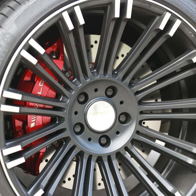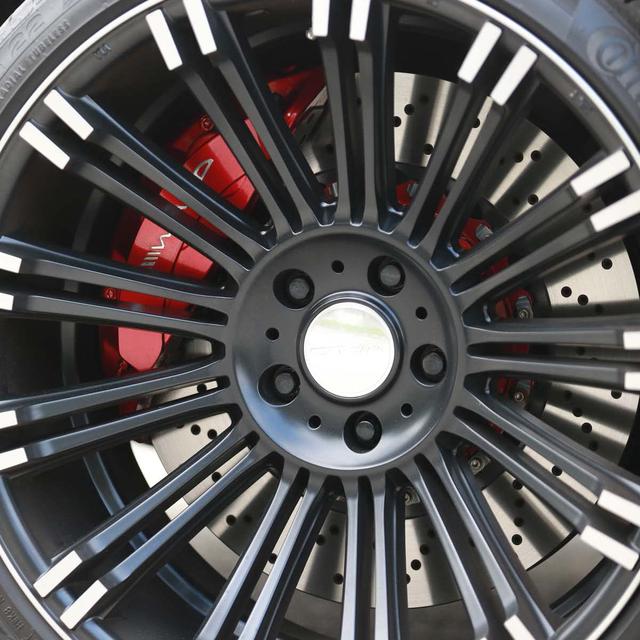 然而由于Wald Black Bison Edition的寬體并非采用破壞性切除鈑件的方式,因此若是配合Wald原廠所配置的Renovatio 22寸大腳輪框,勢必會造成輪胎與車體在行進(jìn)間不時發(fā)生摩擦,為了避免車高降低而衍伸出更多問題,為此僅以Eibach短彈簧以適度降低車身高度,同時兼顧行駛的舒適性及支撐力。剎車方面則是為了配合整體造型而特別委托訂制,采用Brembo前大六與后大六活塞卡鉗已經(jīng)算是相當(dāng)特殊的配置,但是因應(yīng)高達(dá)22寸的改裝輪框,為了避免胎圈看起來過于空洞及單薄,采用前430mm后410mm的雙片式碟片則能同時應(yīng)付制動力與視覺效果。
