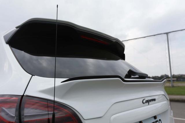 無破壞寬體直上訂制剎車塞到滿 為了不破壞Cayenne原有車身鈑件的完整度,一般人所熟知安裝寬體套件的破壞性施工方式并未在Wald的考量之下,畢竟動輒上百萬的車價,一但車體遭受破壞會讓車輛后續(xù)的價值因此而受到影響,為此Wald采用外部貼合方式,將四個輪拱輕松營造出夸張的肌肉線條,配合車尾后下擾流設(shè)計加上四出尾管,藉由黑色飾板做細(xì)部處理,不僅差異的配色讓視覺上更受矚目,同時也能藉由暗部強(qiáng)調(diào)修飾讓整體外觀能夠增加些許獨(dú)特的運(yùn)動氣息,這一點(diǎn)光是從前、后保桿與側(cè)裙的造型就能充分感受Wald在產(chǎn)品開發(fā)之初的用心。