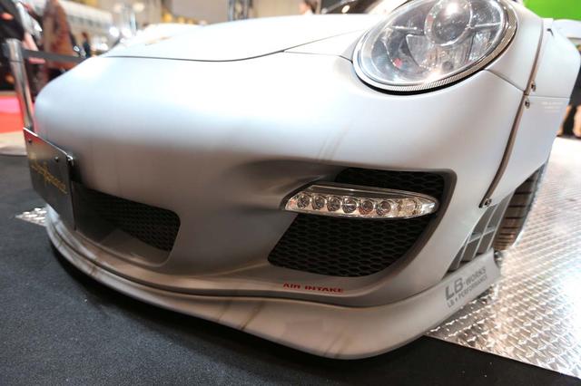 有別于絕大多數(shù)性能車款制式的流線造型,Liberty walk選擇保留傳統(tǒng)的寬體作法,從現(xiàn)場(chǎng)所展示的「牛、馬、蛙」等高單價(jià)名車就能清楚了解,最大特點(diǎn)是切掉原有的葉子鈑,雖然近年的新車價(jià)格愈來愈高,使得改裝的意愿度大幅降低,但是對(duì)于喜愛走出個(gè)人改裝風(fēng)格的車主還是愿意打破以往「原裝」的主觀意識(shí),就算是高單價(jià)仍照切不誤。  | 光只有葉子版寬體似乎在造型上過于單調(diào),為此前保桿兩側(cè)下緣額外增加的散熱孔,有助于內(nèi)藏的冷卻器進(jìn)行撞風(fēng)散熱。 |