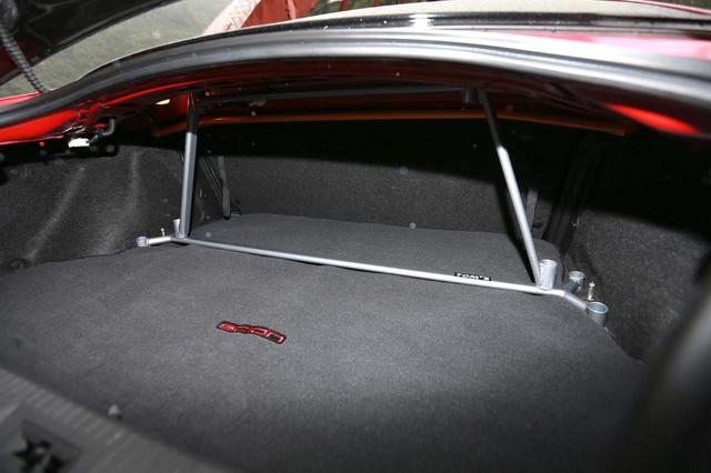 ![]() 為了打造「OTGP最快街車」,ES Tuning這輛Scion FR-S可說是用盡好料,不但全車內(nèi)外皆為改裝精品,發(fā)動機還是寄往日本調(diào)校完成的機械增壓動力... 御用物品加裝 實現(xiàn)輕量化訴求 這輛火紅色的Scion FR-S,外觀所看到的空力套件部分幾乎都是Toyota御用品牌:TRD制品,諸如前下擾流板、側(cè)裙、后下分流器與行李廂蓋上的鴨尾,加上Varis功夫龍發(fā)動機蓋與行李廂蓋,使FR-S看起來更具跑格,而值得一提的是葉子板上的TRD定風(fēng)翼,沿用了來自于GT廠車上的技術(shù),可增強高速行駛下車頭的穩(wěn)定性。 說到廠車所需的輕量化,這輛FR-S則是透過發(fā)動機蓋與行李廂蓋的改裝來實現(xiàn),功夫龍發(fā)動機蓋減少了3.6kg的重量到達6kg,而功夫龍行李廂蓋重量只有3.9kg(原廠為8.1kg),為FR-S減輕不少重量,但在保留內(nèi)飾、空調(diào)的條件下,再加上車身補強部分,其實這輛FR-S根本就沒有輕到。