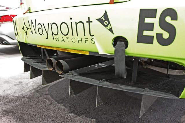 由于是長達25小時的耐久賽,因此動力方面并沒有過大提升,僅更換高流量空氣濾芯、全段排氣管與ECU程式讓最大馬力提升至450hp,不過關(guān)于發(fā)動機隔熱與周邊冷卻則是進一步強化,可以看到發(fā)動機室內(nèi)閃亮亮的金箔最大功效在于隔絕發(fā)動機熱能傳導(dǎo),借此降低進氣溫度以維持馬力不易衰退,除此之外還透過機油冷與變速箱油冷來提升加冷卻。外觀方面,除了前下擾流增加車頭穩(wěn)定性,發(fā)動機蓋導(dǎo)風(fēng)孔則有助于熱氣排出,加上兩側(cè)葉子版增加氣流孔有助于輪拱內(nèi)的亂流排除,車尾則是借由大型GT尾翼與后下分流器以增加下壓力并減緩車底亂流。