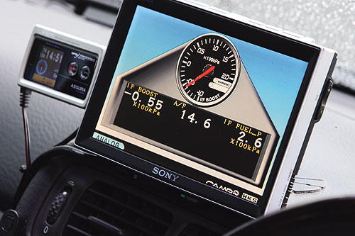 因車輛原本就有著裝銀幕,因此特別用上HKS Camp 2來顯示渦輪壓力、空燃比及燃燒壓力,以便車主可自行監(jiān)控。 |