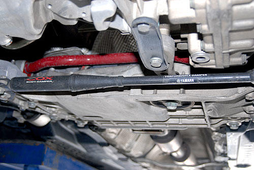 裝于后下防傾桿附近的Cox Body Damper是個油壓式的扭力桿,具有衰減力設計,轉(zhuǎn)為減少車身左右搖擺而開發(fā)。 |