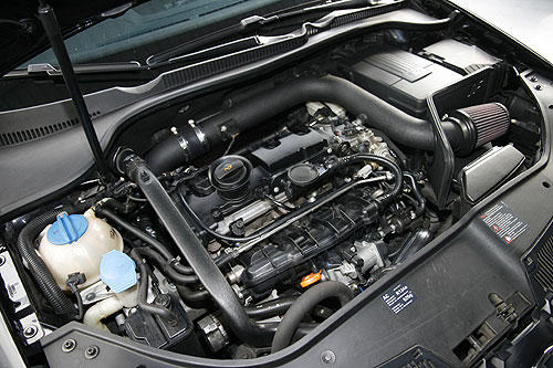 眼前這輛五代三門版Golf GTI,雖然看似內(nèi)斂實則蘊藏著無限動感,隱藏于保桿內(nèi)的大型中冷器、OZ輕量化運動鋁圈等,皆不經(jīng)意地透露此車經(jīng)過精心改造的訊息。事實上這輛三門GTI正是Jordan上個月以385hp之姿在本刊出現(xiàn)的代表作,只不過這個月又再度升級至400hp了。雖然硬體方面因為進化幅度不大,仍然沿用VF的385hp套件,包括KKK-04渦輪機、強力汽油泵浦、強化噴油嘴、汽油調(diào)壓閥、進氣泄壓閥等,不過在升級了GIAC最新版的400hp程式后,增壓值已原本1.2kg/c㎡增加到1.6kg/c㎡(最大瞬間壓力2.0kg/c㎡)。