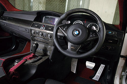 | 各處的碳纖維面板為HyperSport制品,真品碳纖維的質(zhì)感,提升了車子的格調(diào)。 |