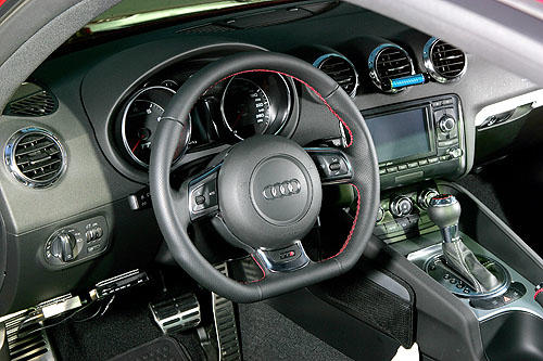 此部TT的外觀也沒(méi)有太大的改變,倒是將銘板的部分全部換成TTS式樣。內(nèi)飾同樣保持原廠,不過(guò)仔細(xì)一看,已改裝了TTS的方向盤與排檔頭,呈現(xiàn)非常動(dòng)感但是內(nèi)斂的味道。