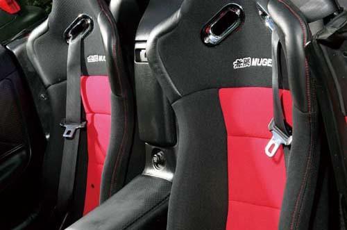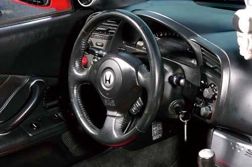 | 內(nèi)飾除換上兩張Mugen制的桶型賽車椅外,A柱上還加裝Defi水溫/油溫/油壓表。 |