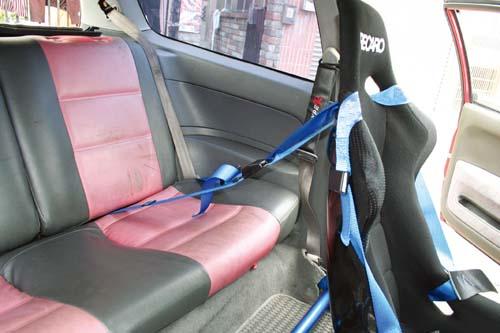 原廠所配備的三點式安全帶較長的束緊距離,對于改裝大凹方向盤的車主來說卻是不夠的,尤其在重大撞擊時,三點式安全帶還來不及拉住身體前傾力道時,胸口可能已撞上方向盤,因此建議換裝四點式安全帶,能提供更充分的保護。