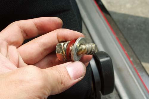 | 由于原廠后座安全帶螺絲的華司直徑較小,建議套入直徑較大的華司,較能確保扣環(huán)的牢固性。