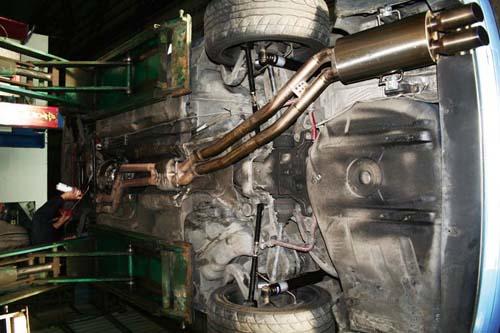 這組E36 M3的中段已改鈦管,但中間交界處仍為H造型,兩管排壓幾乎不受影響的繼續(xù)直通,屬于高轉速和大排氣量適用