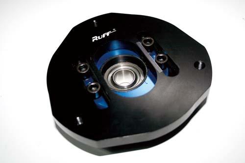BMW的前麥花臣、后多連桿懸掛設計,在車高降低后會自然造成輪胎傾角呈的外八型趴下,但因前輪Camber的外八幅度(約0.5度)比后輪(約2.5度)小非常多,造成明顯的轉向不足,所以可調Camber上座能修正前輪仰角,改善彎中推頭問題,且可調Camber上座既然是為操控而生,Ruff索性為其添加魚眼硬橡膠,使路感更清晰。
