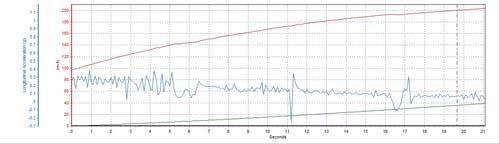 曲線圖可明顯看到三檔換四檔時(shí)發(fā)生了打滑,如果可去除該部分,成績(jī)因該再進(jìn)步約半秒的時(shí)間。 3檔換4檔:1.1秒 4檔換5檔:0.7秒 |