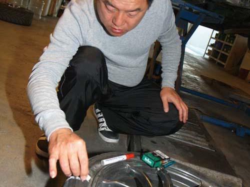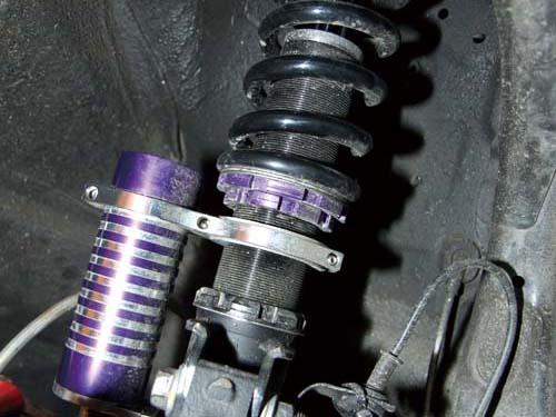 這個(gè)裝置是車內(nèi)氣壓式頂高機(jī)的接頭??,在分秒必爭(zhēng)的賽車場(chǎng)上相當(dāng)好用。 |