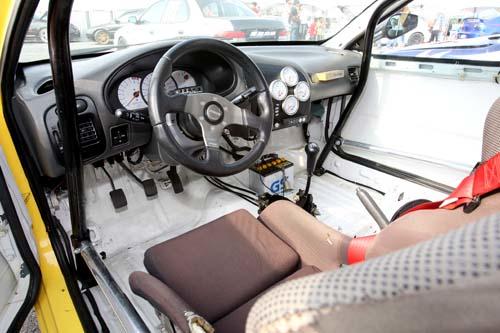 在電腦方面,本車使用了HKS F Con V Pro 3.24版電腦,并交由南部電腦調(diào)校高手冠群淞仔來處理,最大增壓值維持在1.7bar的狀態(tài)下,預(yù)估動(dòng)力可達(dá)到500匹馬力以上的輸出,此外本車另一個(gè)重點(diǎn)在于車身輕量化,雖然Agogo車體不大,但實(shí)際上還是有1100公斤以上的重量,為爭(zhēng)取好成績(jī),車內(nèi)所有內(nèi)飾一律拆除不保留,僅剩下駕駛部分的中控臺(tái)及一張賽車椅,而門板除了移除外,內(nèi)部所有的骨架、升降機(jī)等也完全舍去不用。