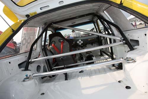 | 此車雖然拆除所有內(nèi)飾偷輕,但還是裝上一組防滾籠,可見福仔對(duì)于安全性可是很重視的。 |