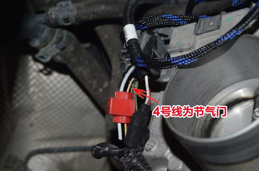第一步:接節(jié)氣門的開度信號線 與渦輪套件的白色信號線接好