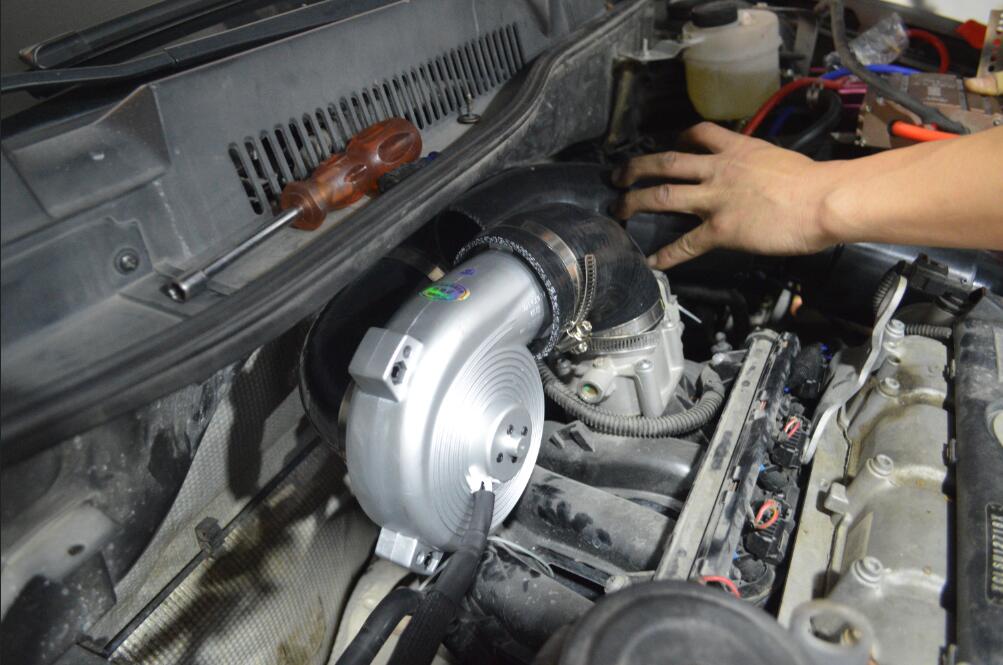 電動渦輪的安裝對于各車型都是大同小異,都是將其串接在節(jié)氣門與空濾之間,
