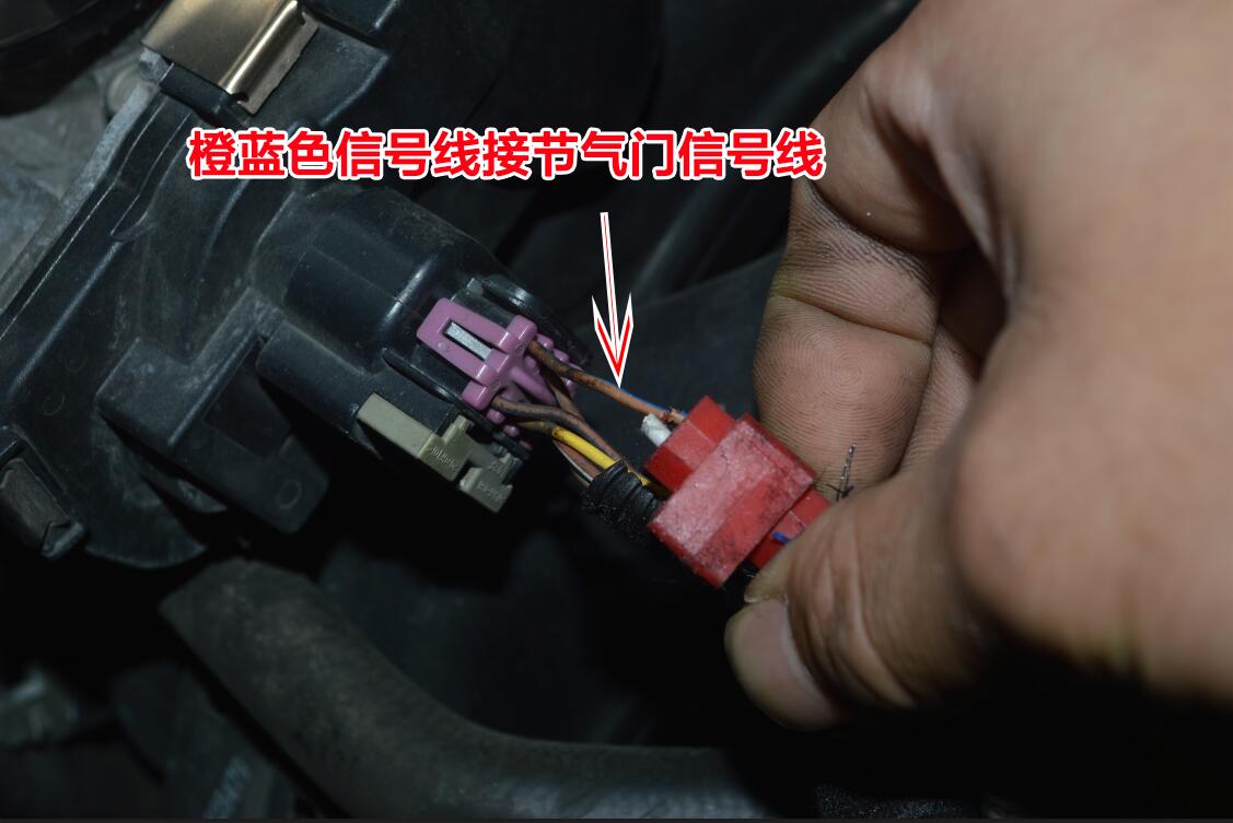 第一步,接信號線,兩條信號線分別是節(jié)氣門插頭上的開度信號線和噴油嘴上的轉(zhuǎn)速信號線,用萬用表測量即可。用免剪線的線卡卡起來就可以,不用破線的。