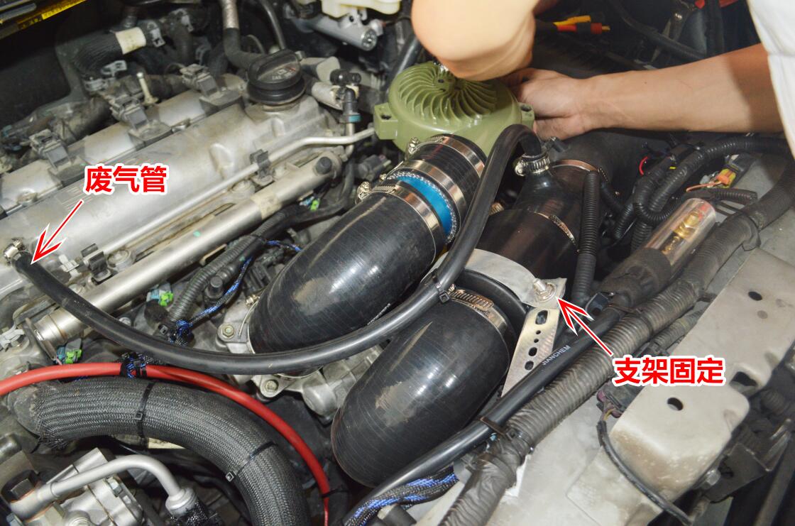 第二步,安裝渦輪主機,參數(shù)我們配的安裝圖紙,按圖中的順序組裝好連接好,再上卡箍箍緊。硅膠管的長短可根據(jù)實際需要切割,渦輪主機不可固定,懸空就可以的,如要固定可固定消音管處。