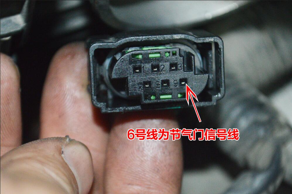 第一步:接節(jié)氣門的開度信號線 與渦輪套件的白色信號線接好