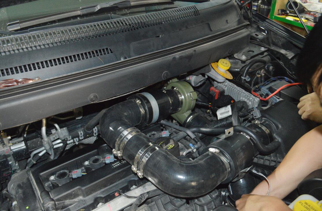 電動渦輪的安裝對于各車型都是大同小異,都是將其串接在節(jié)氣門與空濾之間,