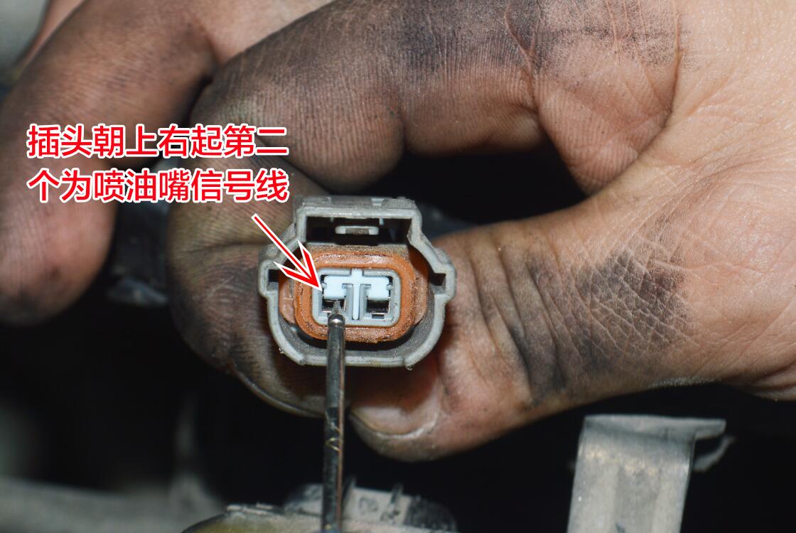 一個(gè)噴油嘴的信號(hào)線即可。量線方法:車鎖撥到ACC檔,萬用表撥到直流電壓20V檔,