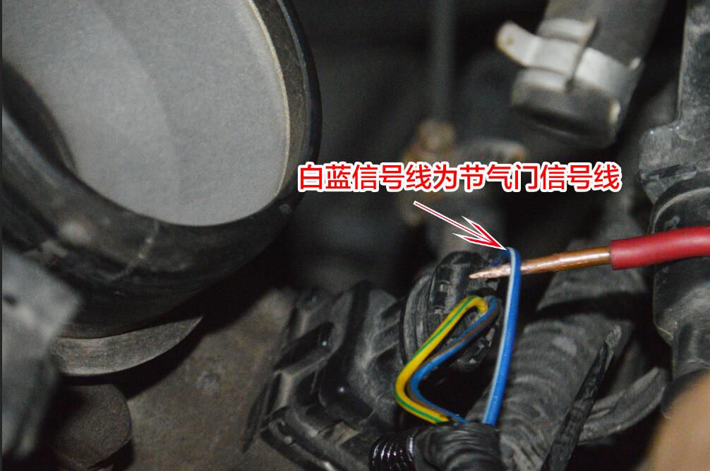 第一步:接節(jié)氣門的開度信號線 與渦輪套件的白色信號線接好