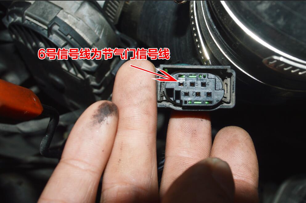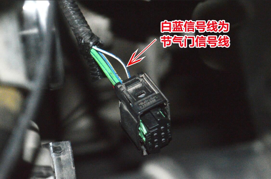 第一步:接節(jié)氣門的開度信號線與渦輪套件的白色信號線接好