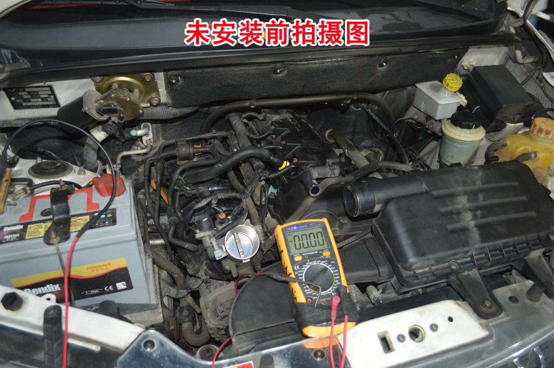 撥出其中一個(gè)噴油嘴,將萬用表黑表筆搭鐵,紅表筆測(cè)量噴油嘴上其中一條線,當(dāng)測(cè)得