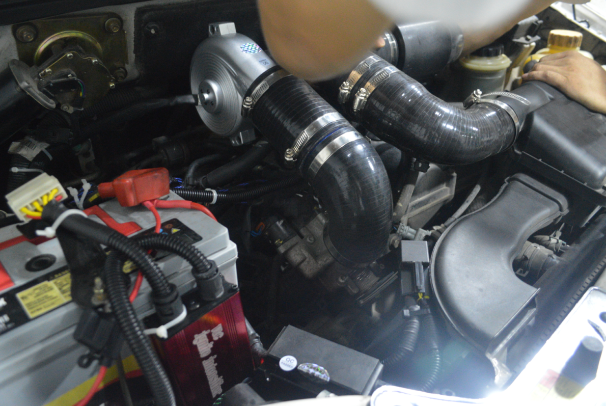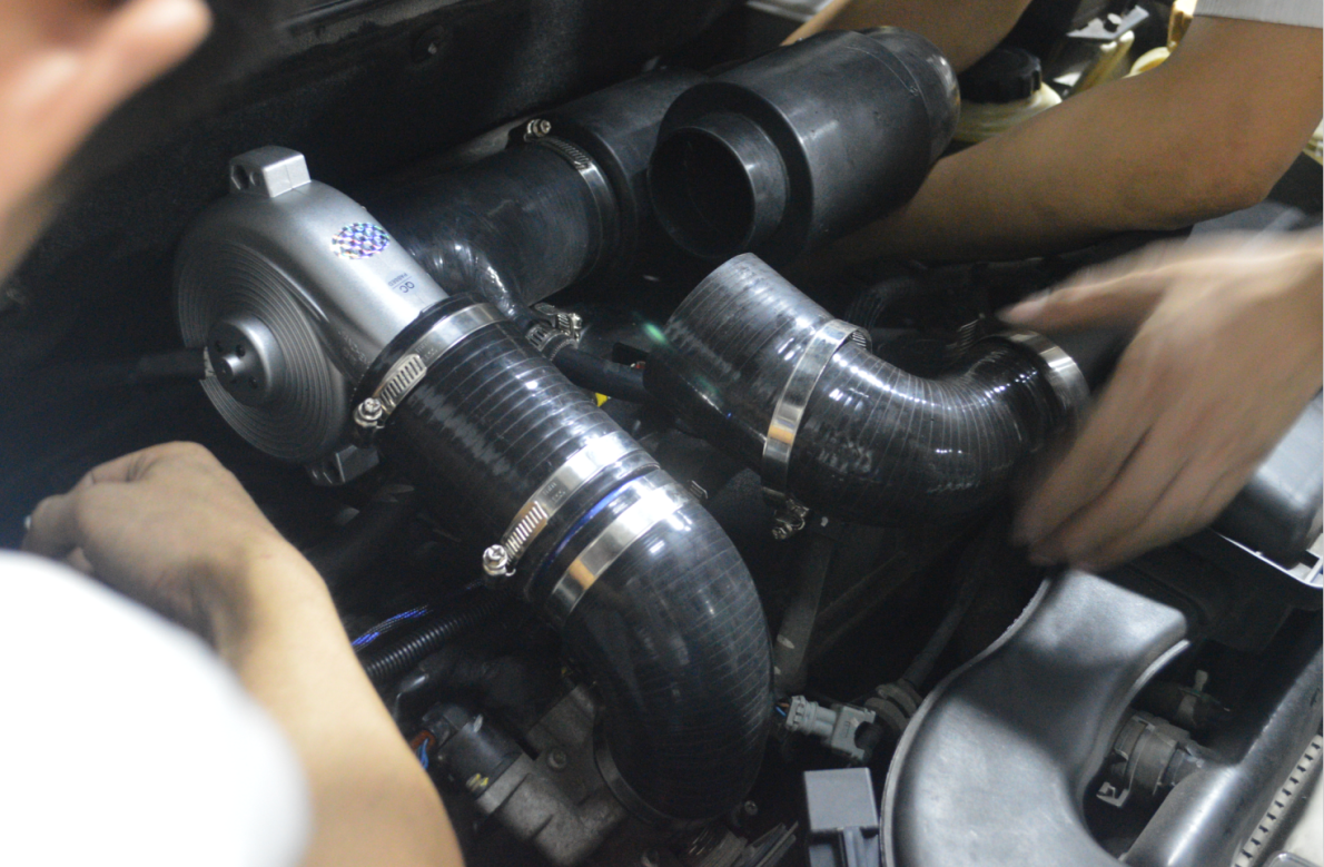電動(dòng)渦輪的安裝對(duì)于各車型都是大同小異,都是將其串接在節(jié)氣門與空濾之間,
