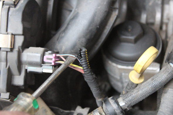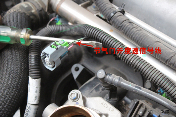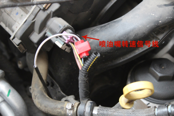 如下圖為需要接入的噴油嘴上的轉(zhuǎn)速信號線: