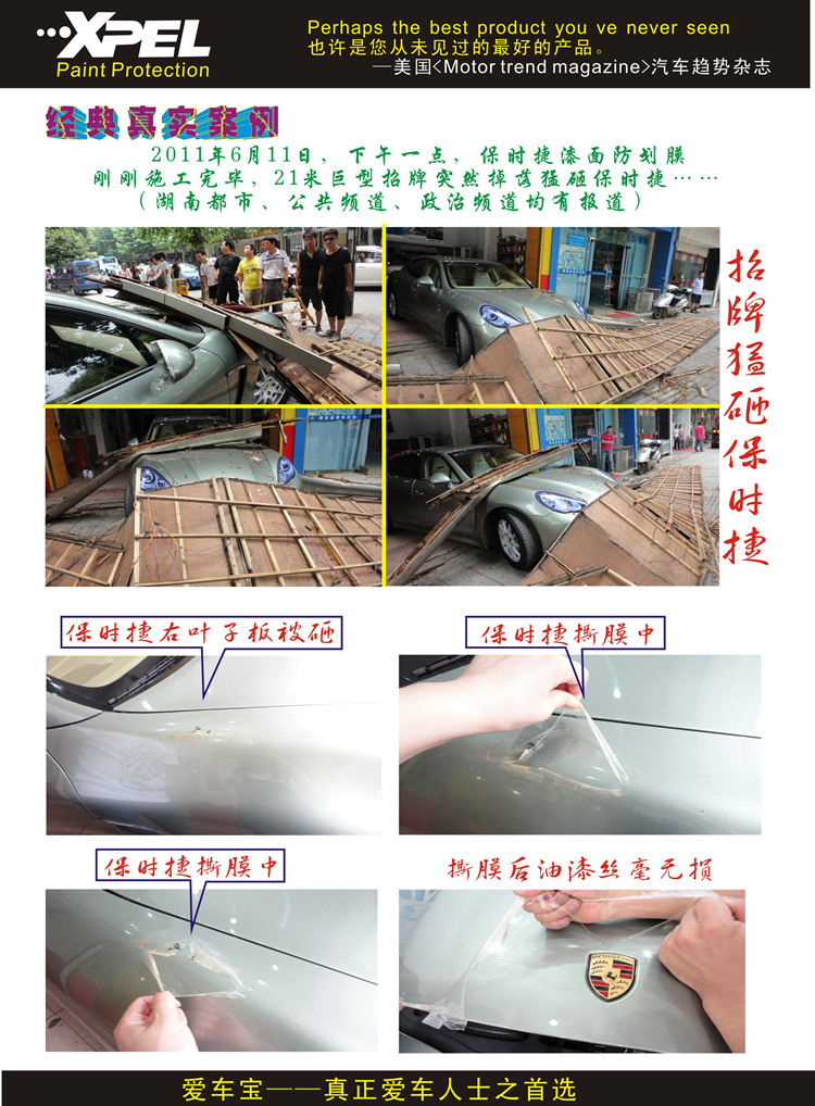 輕松養(yǎng)護:貼XPEL漆面保護膜后,再也不用拋光打蠟,鍍膜、鍍晶了。一次投資,終身受益。為您節(jié)約的不光是金錢,還有最寶貴的時間。