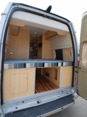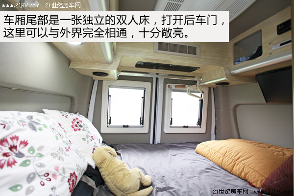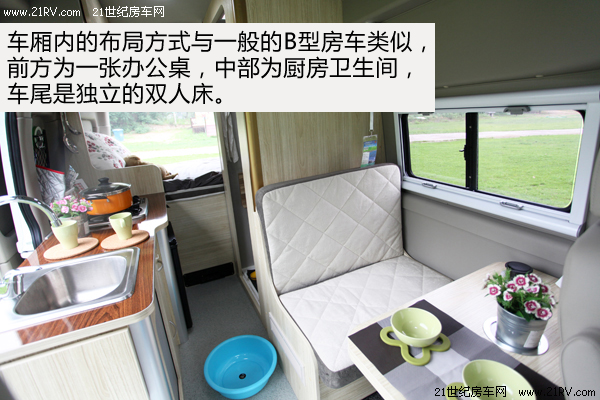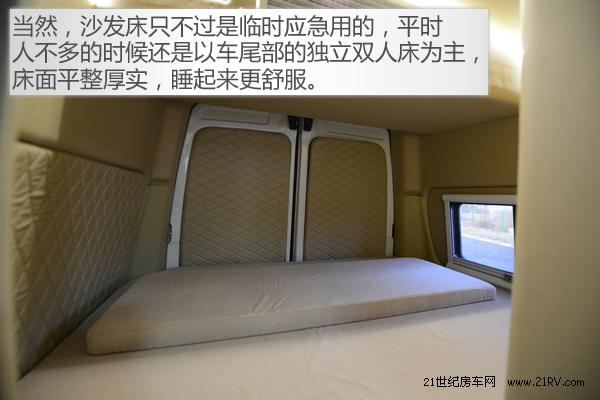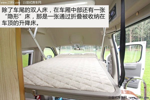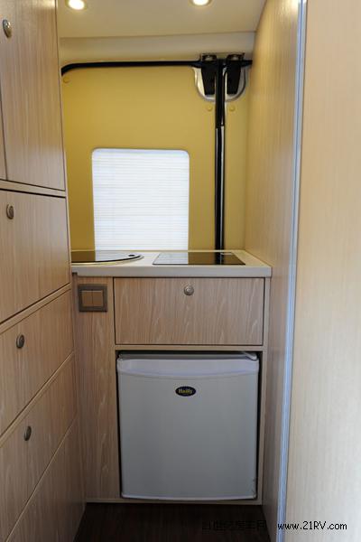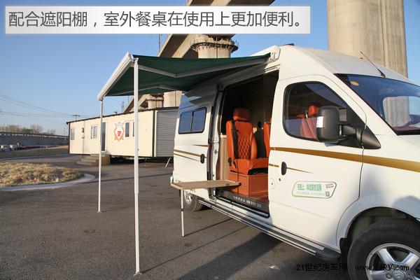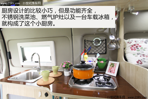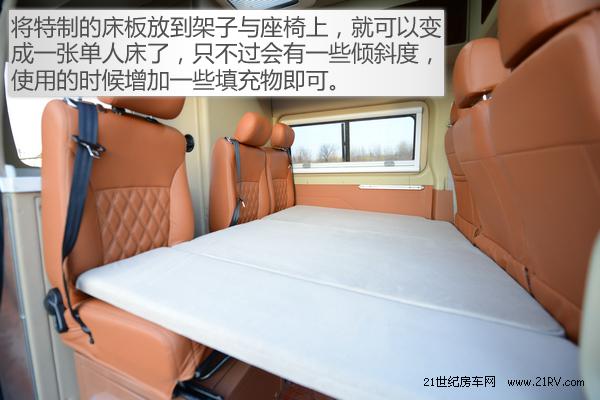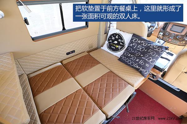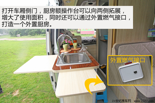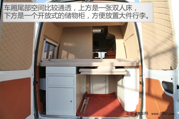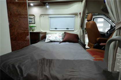 內(nèi)部空間不是很大,但通過設(shè)計(jì)師巧妙的空間變換,車內(nèi)可變成一張單人床和一張雙人床,并且衛(wèi)生間空間讓人滿意,還配有外置煤氣灶,對(duì)于喜歡做飯的人來說,非常實(shí)用。