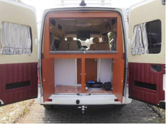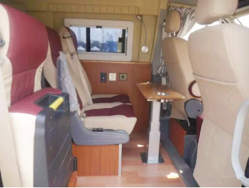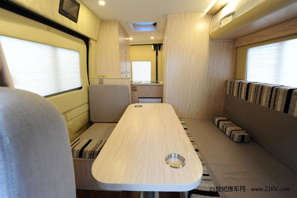 內(nèi)部設(shè)計(jì)方便,短軸版S系列房車采用了全封閉式車廂,取消了側(cè)滑門,轉(zhuǎn)而僅提供了副駕駛一側(cè)車門進(jìn)入,這樣的好處在于將不大的車廂中部空間得到更大化的利用,使得車廂中部形成了一個(gè)可以同時(shí)容納4-6人同時(shí)使用的餐桌,當(dāng)然這張餐桌也可以變成一張雙人床。