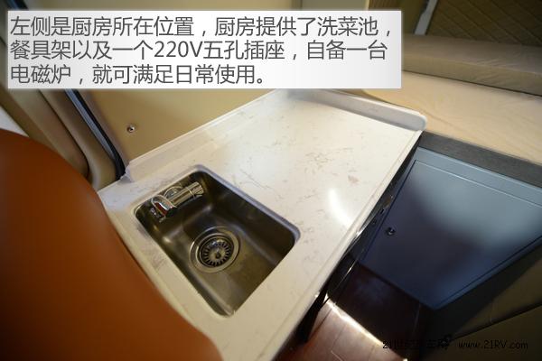 廚衛(wèi)設(shè)施設(shè)于車廂尾部,受限于車內(nèi)空間,廚房與衛(wèi)生間的空間均不是很大,但也足夠日常使用。