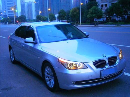 由于改車地點(diǎn)在車主的地下停車場,光線不好,只能是升級完后在馬路上拍攝,此時已經(jīng)是傍晚7點(diǎn)鐘了,在晚霞的映射下,寶馬5系還真是美。