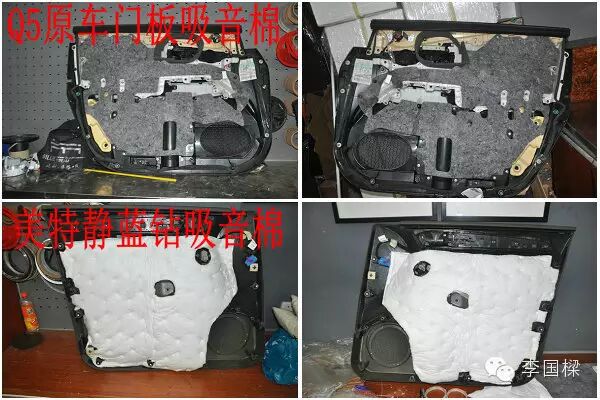 安裝喇叭之前我們先把Q5的車門給處理好,四門隔音采用二層美特靜藍(lán)鉆減震板加一層黑鉆隔音隔熱墊處理,可以看到車門板內(nèi)部形成一個(gè)很好的密閉空間,不僅鈑金的震動(dòng)會(huì)大幅度降低,通過車門孔洞傳遞的噪音,噪熱灰塵也大幅度降低,當(dāng)然還有的就是汽車揚(yáng)聲器的音質(zhì)和升壓級(jí)也大幅度提升。