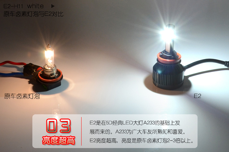 4.汽車大燈E2-9005亮度超亮,約是原車鹵素?zé)?/a>泡的4倍亮度,但能耗僅是原車鹵素?zé)襞莸?0%!