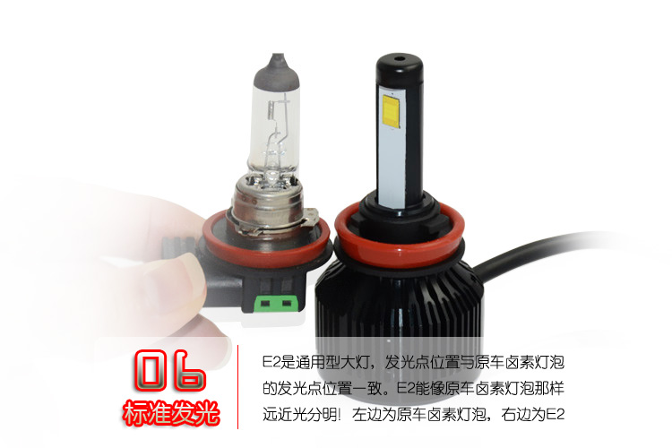 7.汽車LED前大燈泡E2非常小巧,萬車通用!只要大燈型號對就能裝;