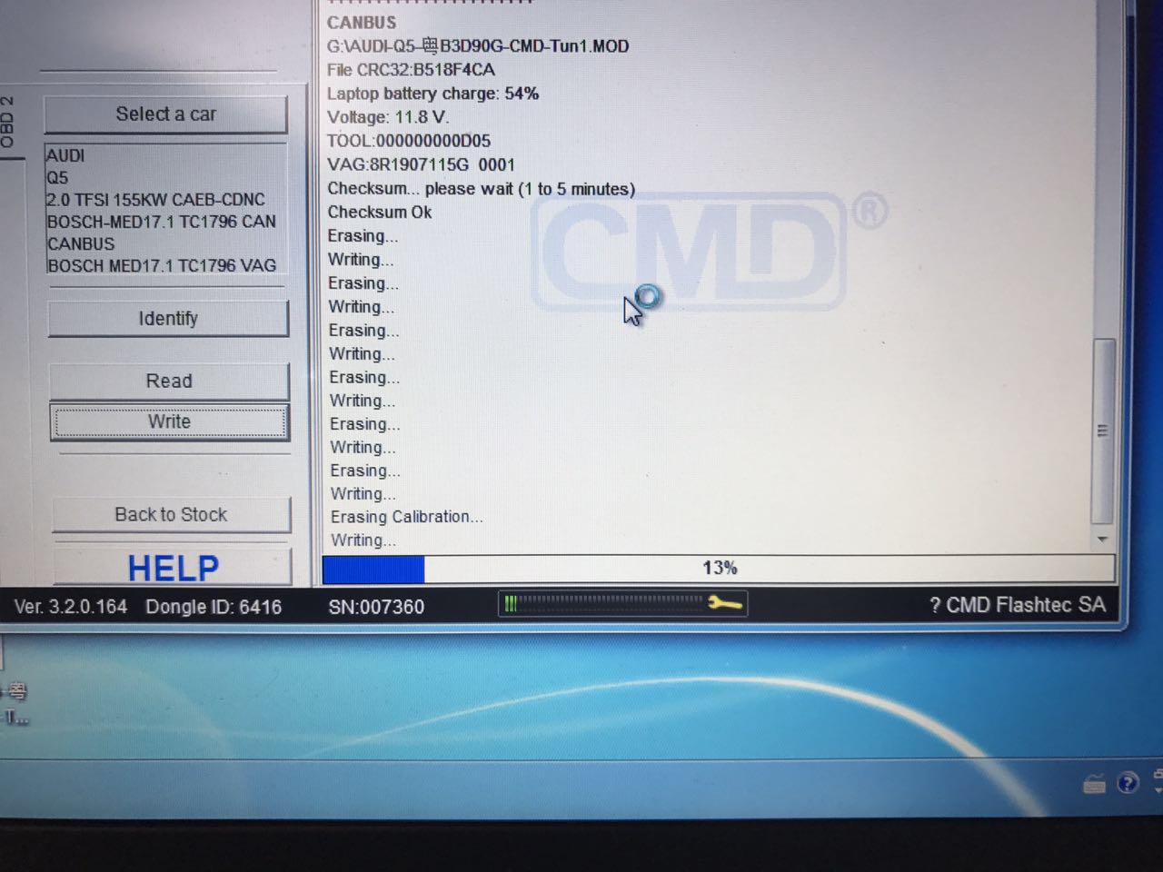 我們頂速和車主相約在了車主家樓底,對(duì)他愛車進(jìn)行升級(jí)。奧迪q5 采用的是obd讀寫。非常的方便。
