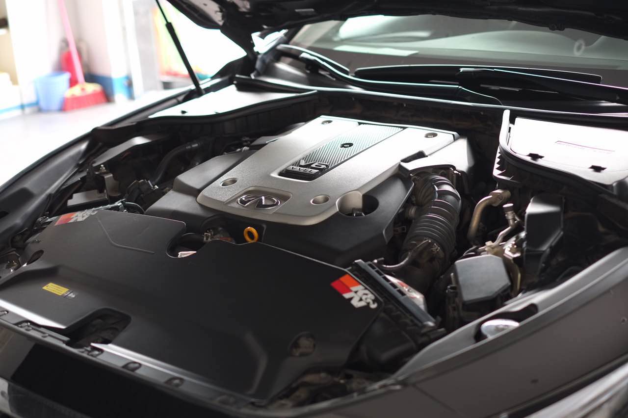 今天到來提升動(dòng)力的就是這款帶有紅色s的Q50.針對(duì)于車主而言,v6的引擎動(dòng)力是夠用了的。但是起步非常肉,是車主非常不能忍受的缺點(diǎn)。經(jīng)過朋友的介紹來到了我們頂速特調(diào)。