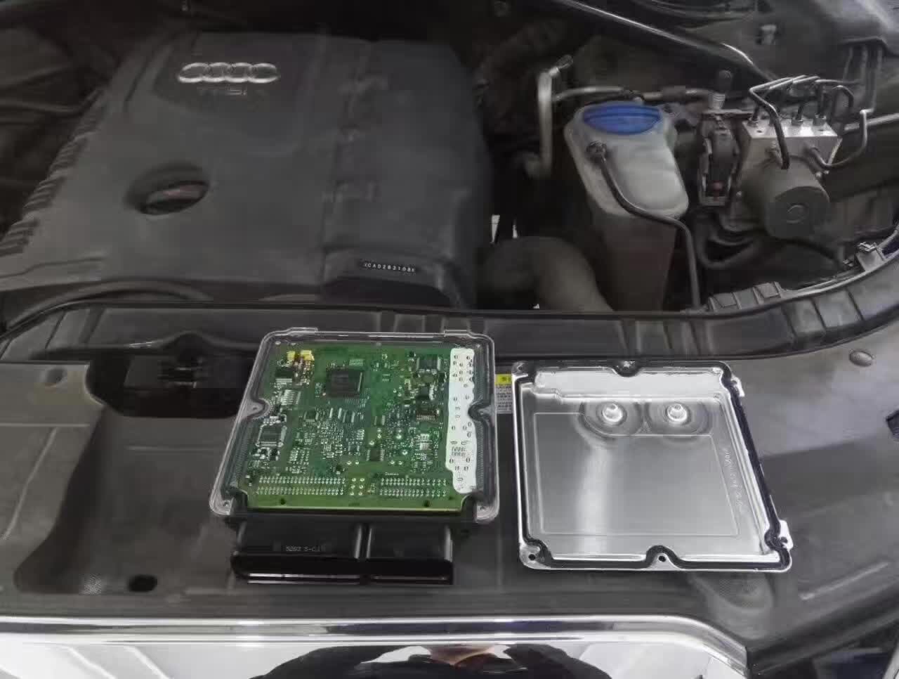 這就是這款?yuàn)W迪q5的電腦板,也就是它的大腦。這輛車的電腦版需要拆板處理, obd不能寫入