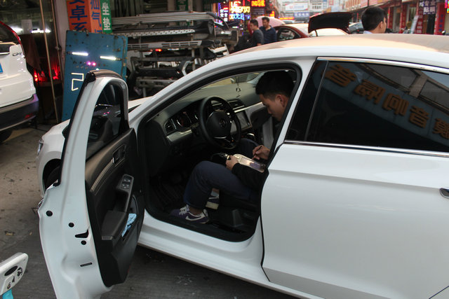 工程師對(duì)車子進(jìn)行專業(yè)檢測(cè)與分析之后,開始進(jìn)行車輛升級(jí),此款車升級(jí)相對(duì)來(lái)講還是比較簡(jiǎn)單的,采用OBD直接讀取的模式進(jìn)行操作。