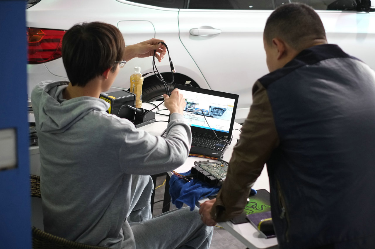 RCZ刷ecu需要把電腦板拆下,我們的工程師取下電腦板后通過專業(yè)的設(shè)備連接ecu,將ecu原車數(shù)據(jù)讀取出來,然后根據(jù)客戶駕馭信息對數(shù)據(jù)進行調(diào)校,一個多小時的特調(diào)。在也不是1.6t的排量的了,準備試車、、、