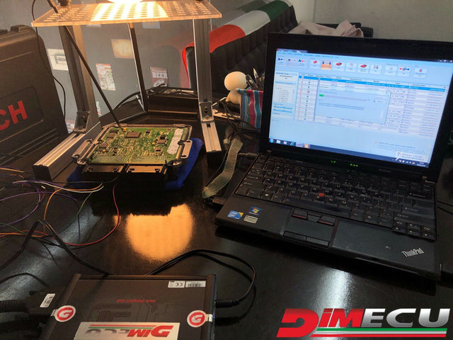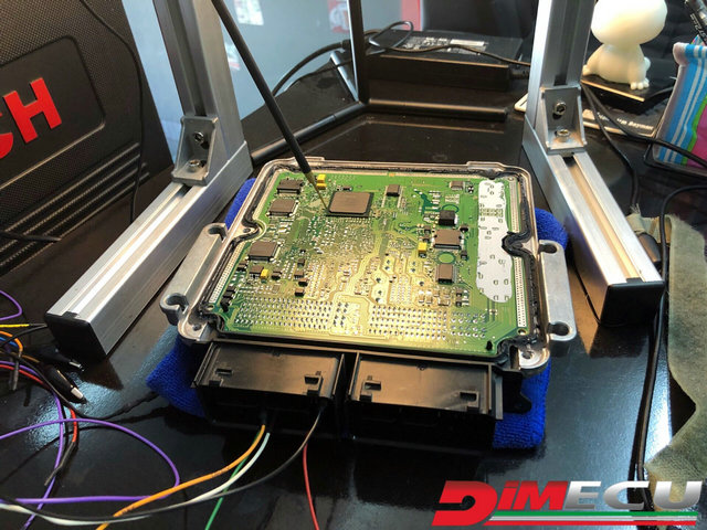 打開ECU保護(hù)外殼,焊接線纜,選擇對應(yīng)型號開始讀取原車ECU程序,經(jīng)過一個小時的數(shù)據(jù)修改 寫入升級數(shù)據(jù)。