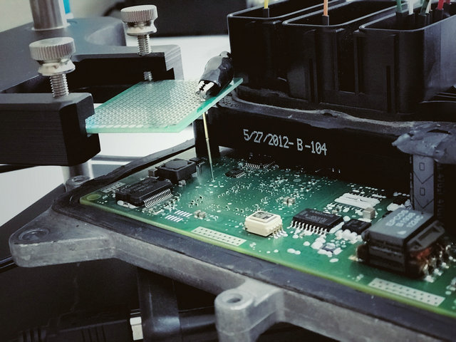 我們的工程師對于寶馬X3刷ECU已經(jīng)是輕車熟路了,把車子進行一番檢查確認無誤后,打開發(fā)動機艙將電腦板ECU取下。移動到操作臺,進行拆板。然后將拆好的進行數(shù)據(jù)鏈接,讀寫數(shù)據(jù),工程師面對面的特調(diào),1個小時不到已經(jīng)操作完成。